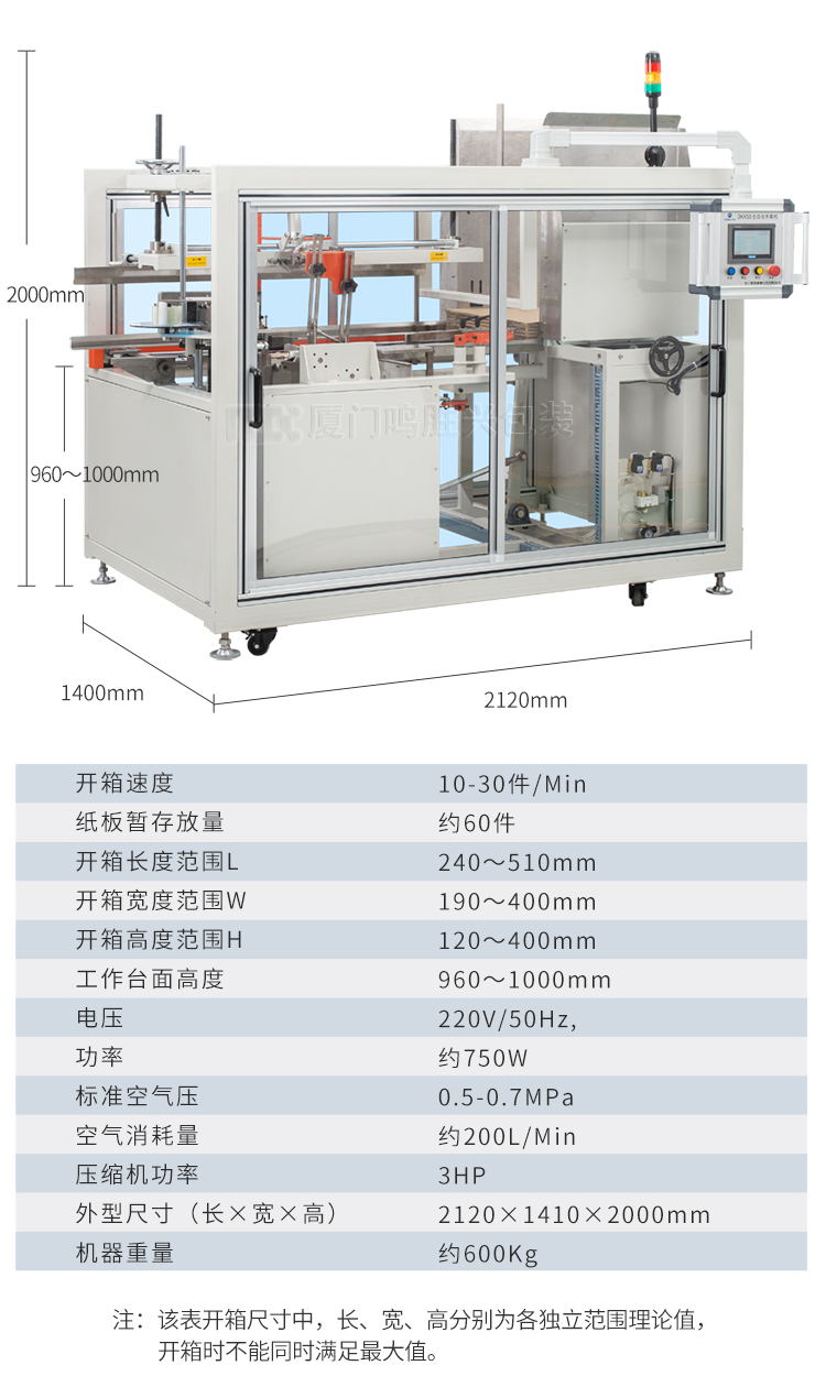 本機適合較大紙箱開箱封底,每分鐘開箱20-30個。廣泛應(yīng)用在食品、飲料、化妝品、家用電器、書刊、紡織、百貨、化工等行業(yè)。