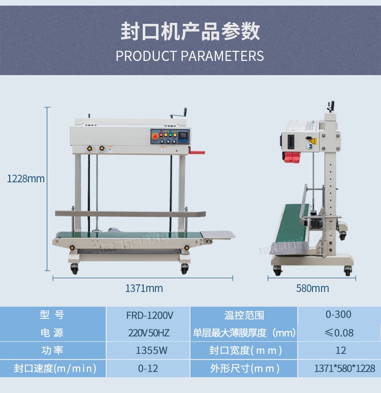 產(chǎn)品中心 > 封口機(jī) > FRD-1200V立式PE膜墨輪封口機(jī)