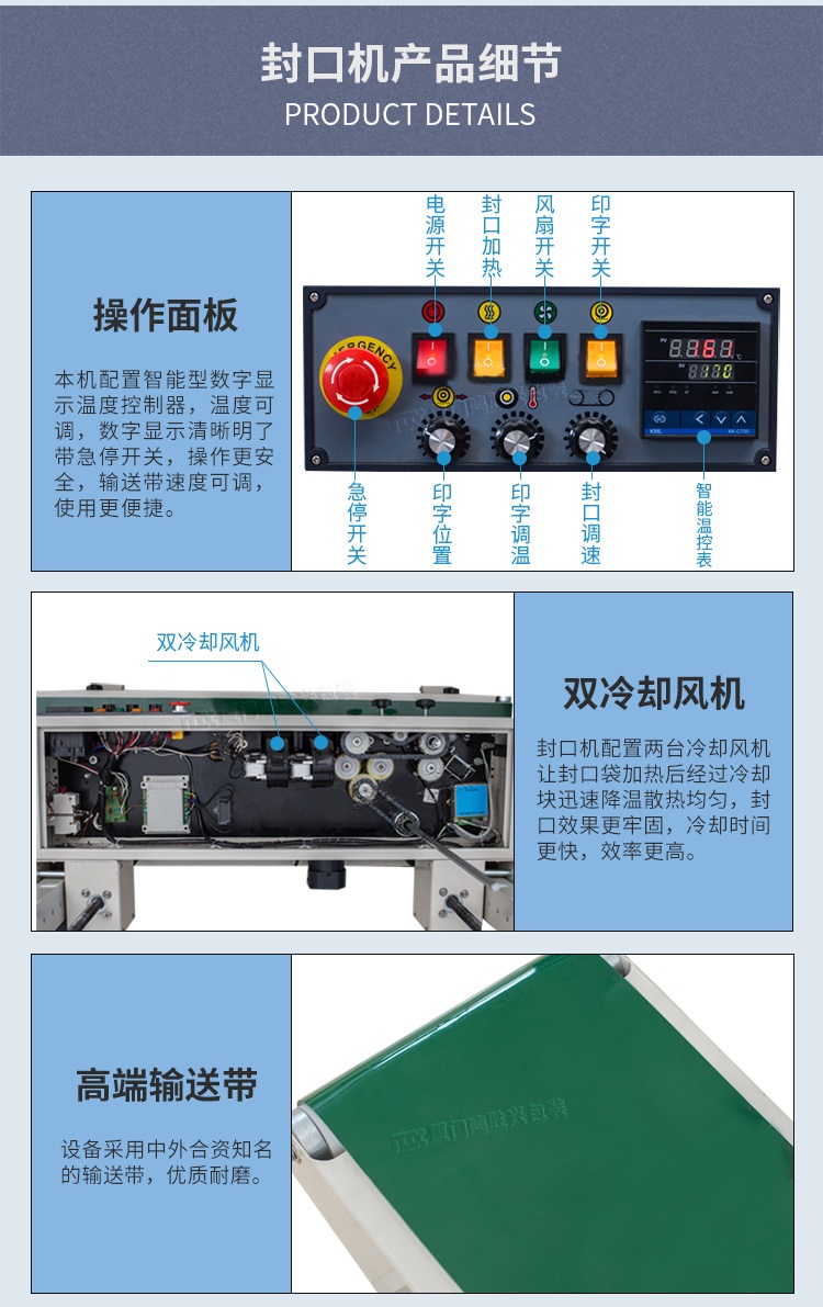立式pe膜封口機(jī)采用立式封口,適合體型較大的物品包裝,當(dāng)包裝物品的高度發(fā)生變化時(shí),操作人員只需要簡單搖動(dòng)手柄即可使封口高度達(dá)到精準(zhǔn)數(shù)值。