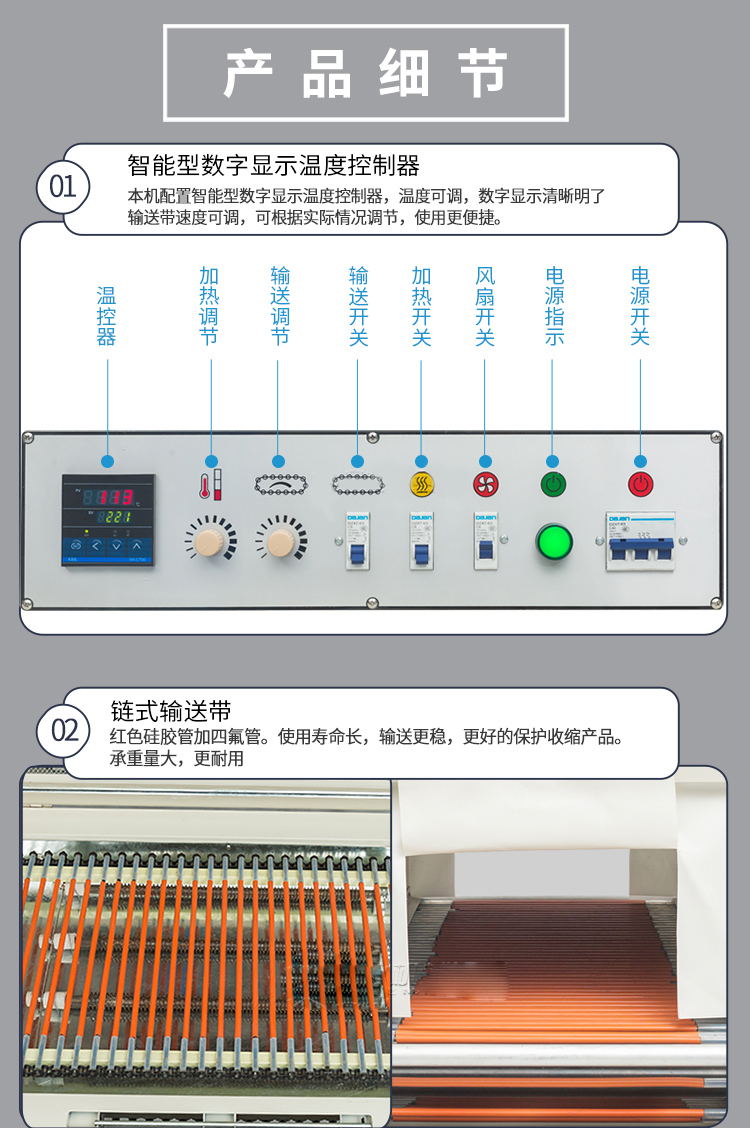 熱收縮包裝機采用收縮薄膜包裹在產(chǎn)品外面,經(jīng)過加熱,使收縮薄膜收縮裹緊產(chǎn)品,充分顯示物品的外觀,包裝后的物品能密封防潮防污染。